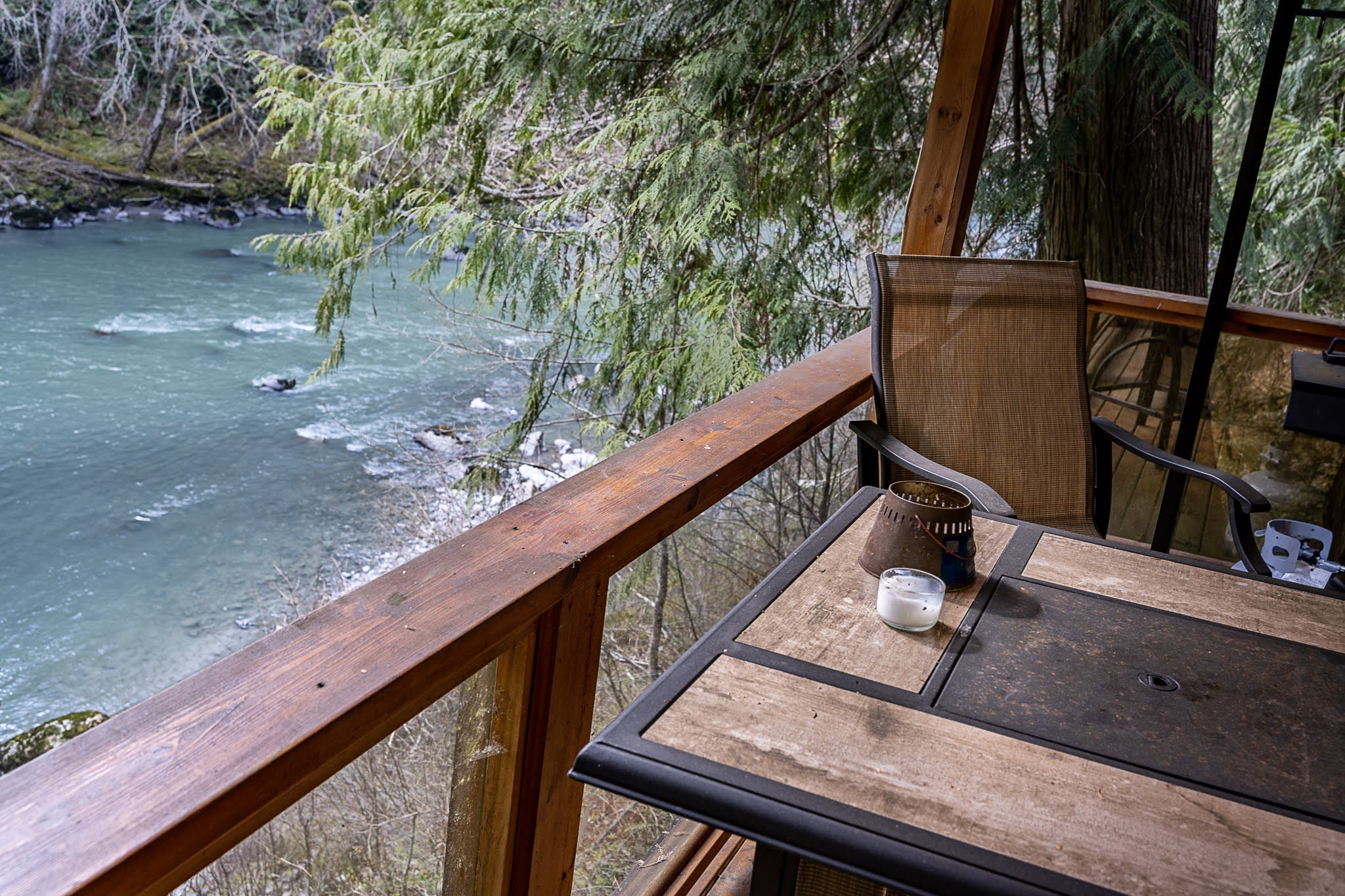 ABSOLUTE PERFECTION!! I must admit it was even better than I had expected. I have stayed at several AirBnBs before but this has been by far the best! The view was amazing, the cleanliness was pristine, everything was thought of, and the bed was so comfortable!! Kitchen amenities were perfect and the counters were so spacious! Fresh ground coffee in the morning while listening to the rain and river on the deck in the morning - absolutely can’t get any better. My only regret is that I can’t give it more stars. :)