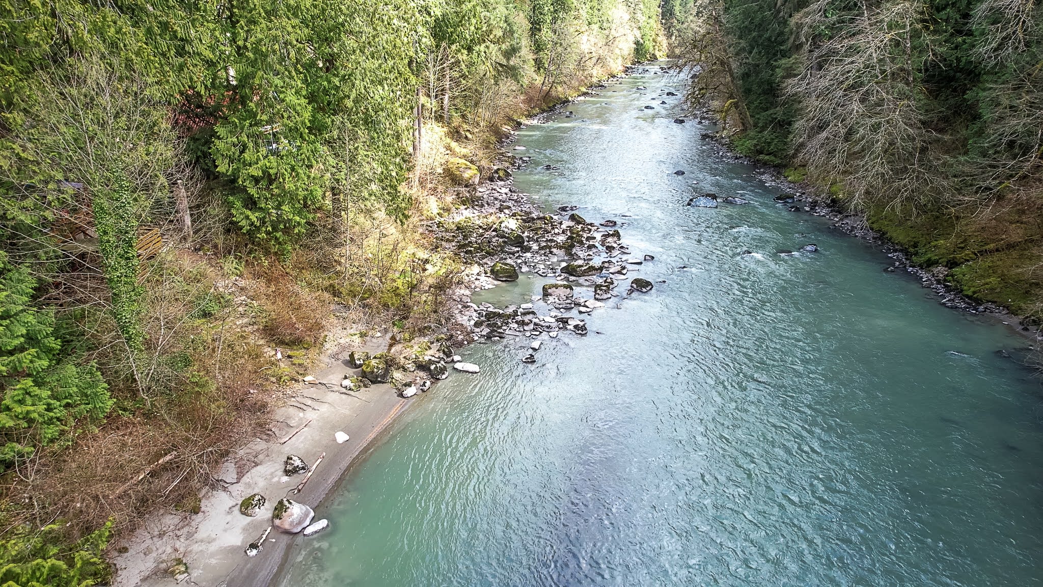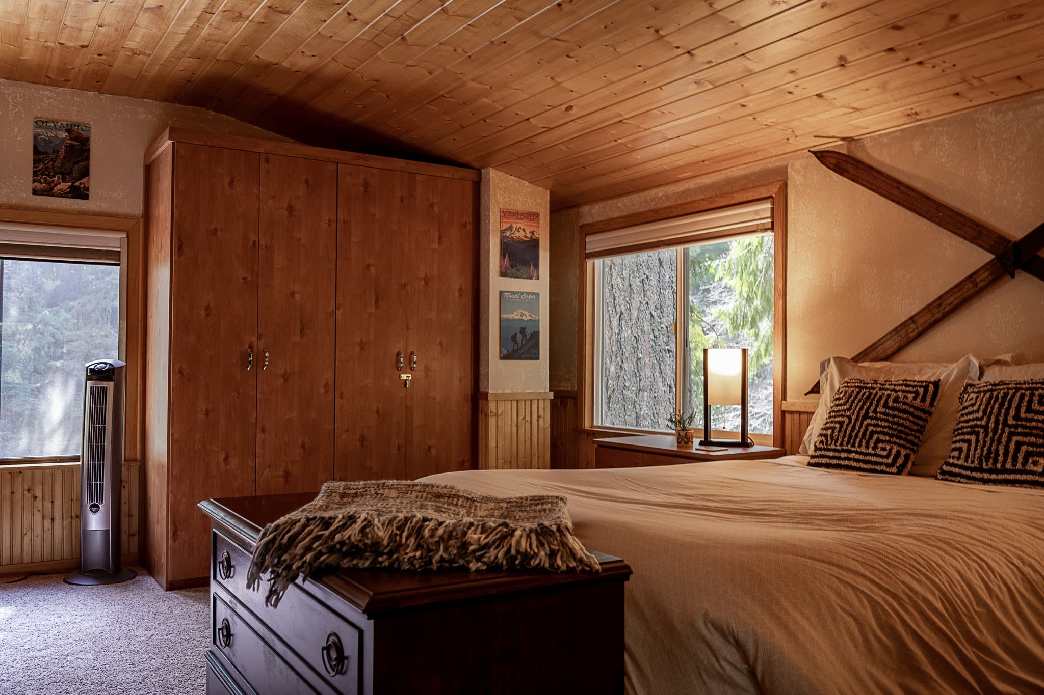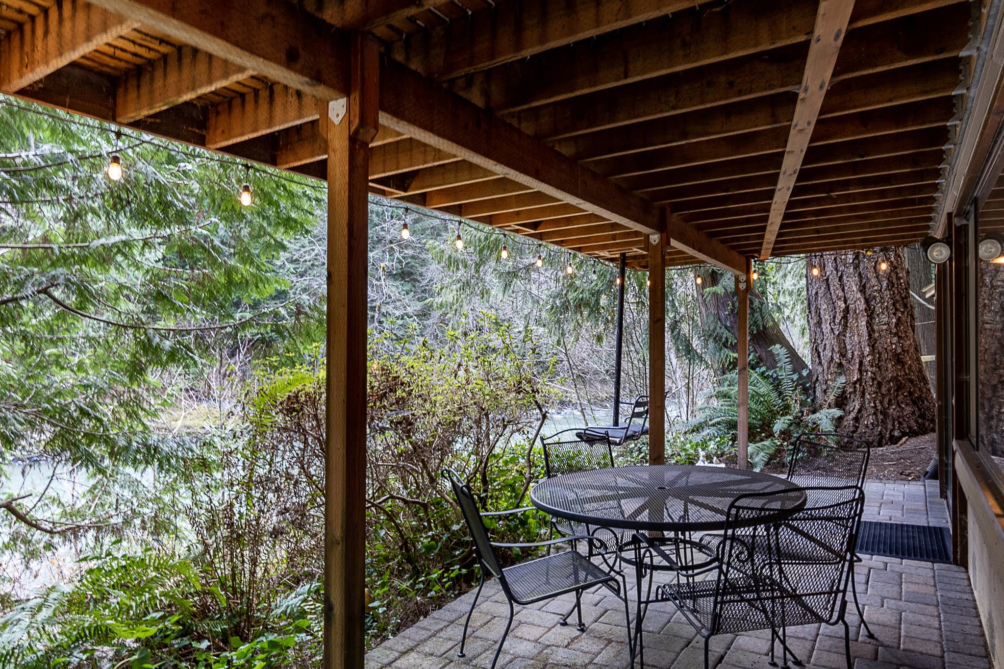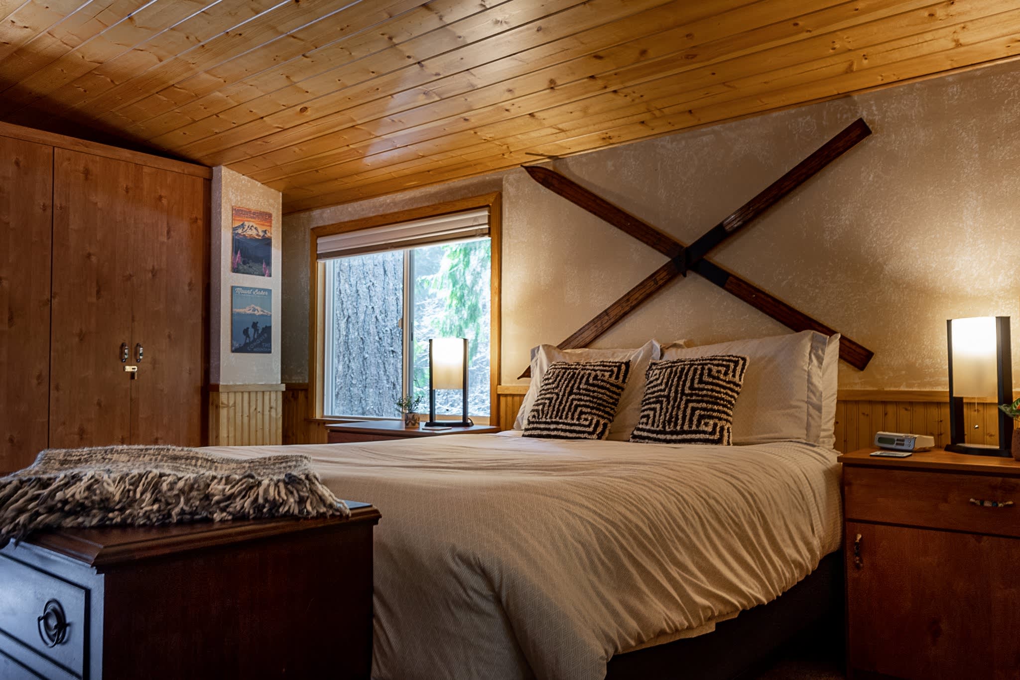 Chase's River Cabin has everything you need for a relaxing getaway. On the main level, you'll find a cozy queen bedroom, a full bath, and a fully stocked kitchen with all the necessary appliances and cookware. The open concept dining, kitchen, and living area is the perfect space to gather with friends and family. Enjoy stunning views of the river from every room on this level, or step outside onto the large gathering deck with heat and BBQ, where you can enjoy a meal or soak in the breathtaking views. Upstairs, you'll find a comfortable queen bed and an ensuite bath in the upper bedroom, as well as a beautiful view of the river from the window. Downstairs, there are two twin beds (bunk beds), a large living area with a fireplace, and a laundry room for your convenience. The lower level also has a great outside patio gathering area, where you can enjoy the views and the fresh mountain air while you soak in our hot tub. And don't forget the cool retro chair lift that you can enjoy swinging on while taking in the beauty of the river! When you're ready to explore, take a short hike from the property or relax by the river on our beautiful beach, complete with a solo firepit for those chilly evenings. Whether you're looking for adventure or serenity, Chase's River Cabin in the PNW has it all. Book now and make your escape to nature!