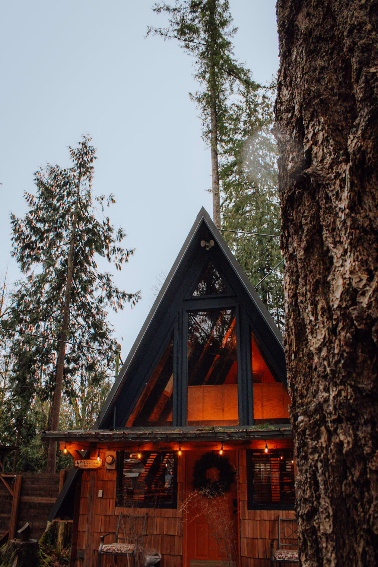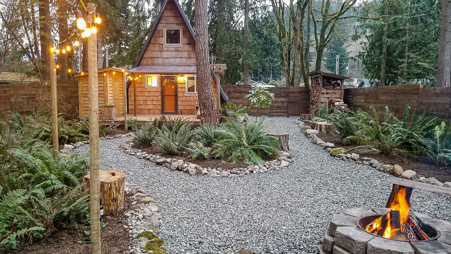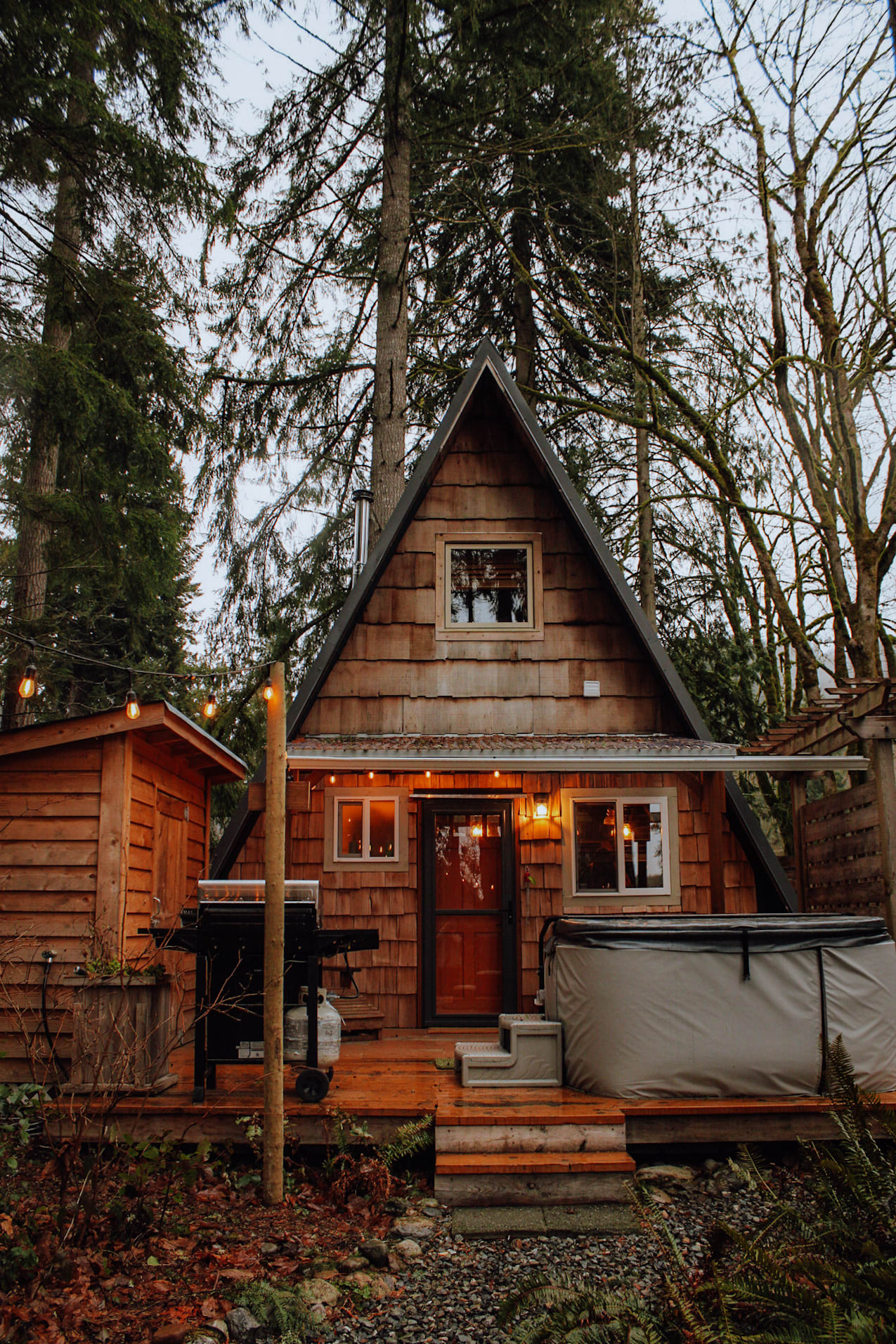 Your Northwest Mountain Wonderland adventure starts and finishes here. The location of this property puts you at the entrance to the Mountain Loop highway and just outside of the mountain town of Granite Falls. You'll find all the good eats of Granite's handful of restaurants minutes away. The town IGA grocery has craft liquor and beverages, as well an amazing deli for your daily adventures. The big hikes of the North Cascades are just down the road. Robe trail and Lime Kiln trails can be great warm-ups with easy terrain and wonderful Robe canyon views. Maybe try a few gravel road walks to lead to hidden paradises. There are also Lake 22, Heather Lake, Monte Cristo Ghost Town, Gothic Basin, Mt Pilchuck, Ashland Lakes, Boardman Lake, and don't forget The Granite Falls Fish Ladder at the falls right by your cabin! Check in with the Rangers just outside of Verlot up the road for conditions. Let's talk about this cabin. This property is the quintessence of our latest transformation. Situated on the edge of a small family neighborhood, you'll find this A-frame tucked nicely into the woods on a ridge overlooking the Canyon Creek spur of the South Fork of the Stillaguamish River. As you enter the home, the open beam look with fresh cedar will remind you of a mountain ski chalet. Big windows and skylights, Butcher block counters, farm sink, bamboo floors, radiant heated slate, large wood stove, spiral stairs, cedar trim, comfy queen bed and furniture. Everything you need to create delicious cuisine, or a craft cocktail. Fully stocked kitchen with cookware, oils, and spices. We almost named this place the "Firepit". Out the backdoor you will leave the world behind and enter a magical place. Totally private, natural landscaping with lush ferns, rock, covered deck with hot tub, pathways through the woods to your firepit that overlooks the cascade foothills, distant river, and wetlands below. The evening may include songs of the thousands of frogs below.
