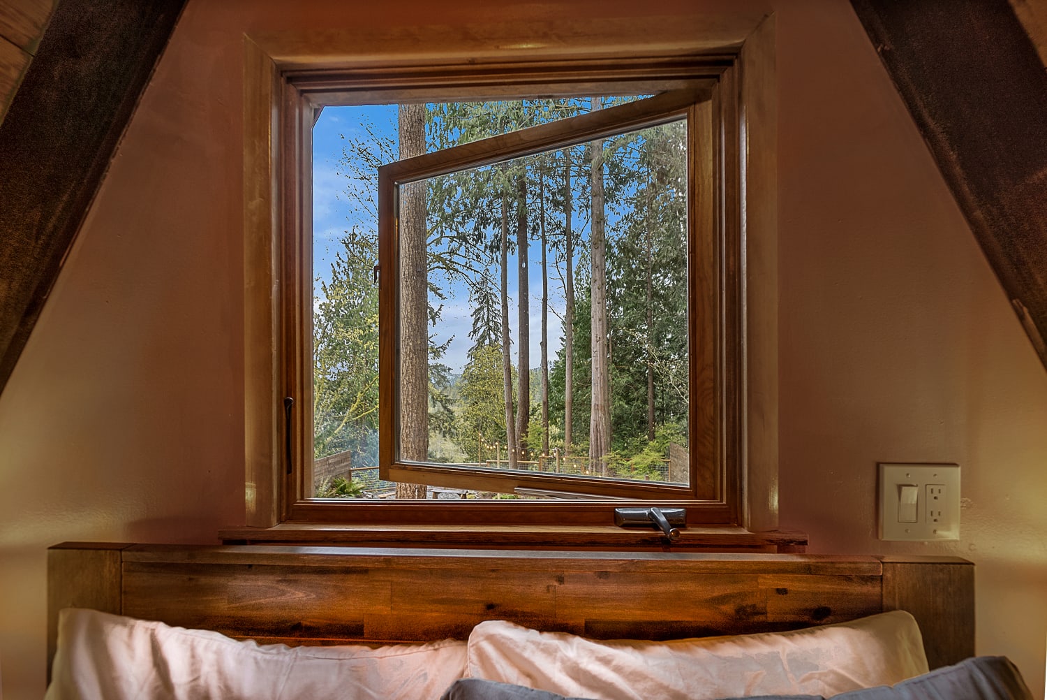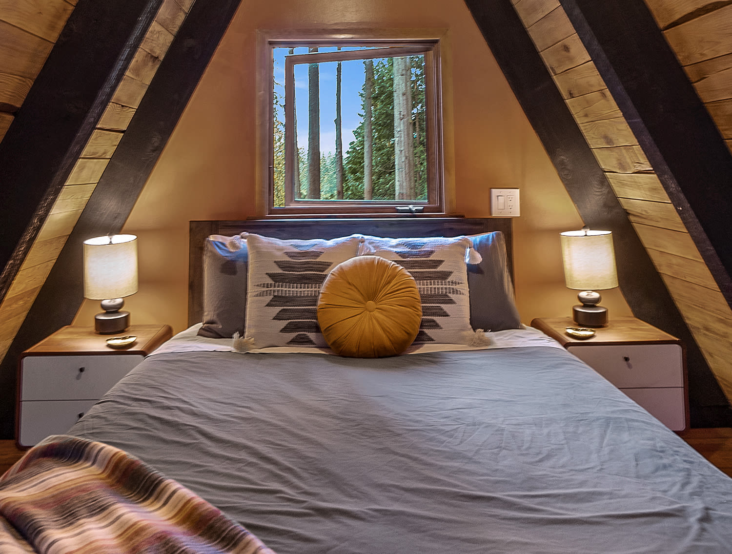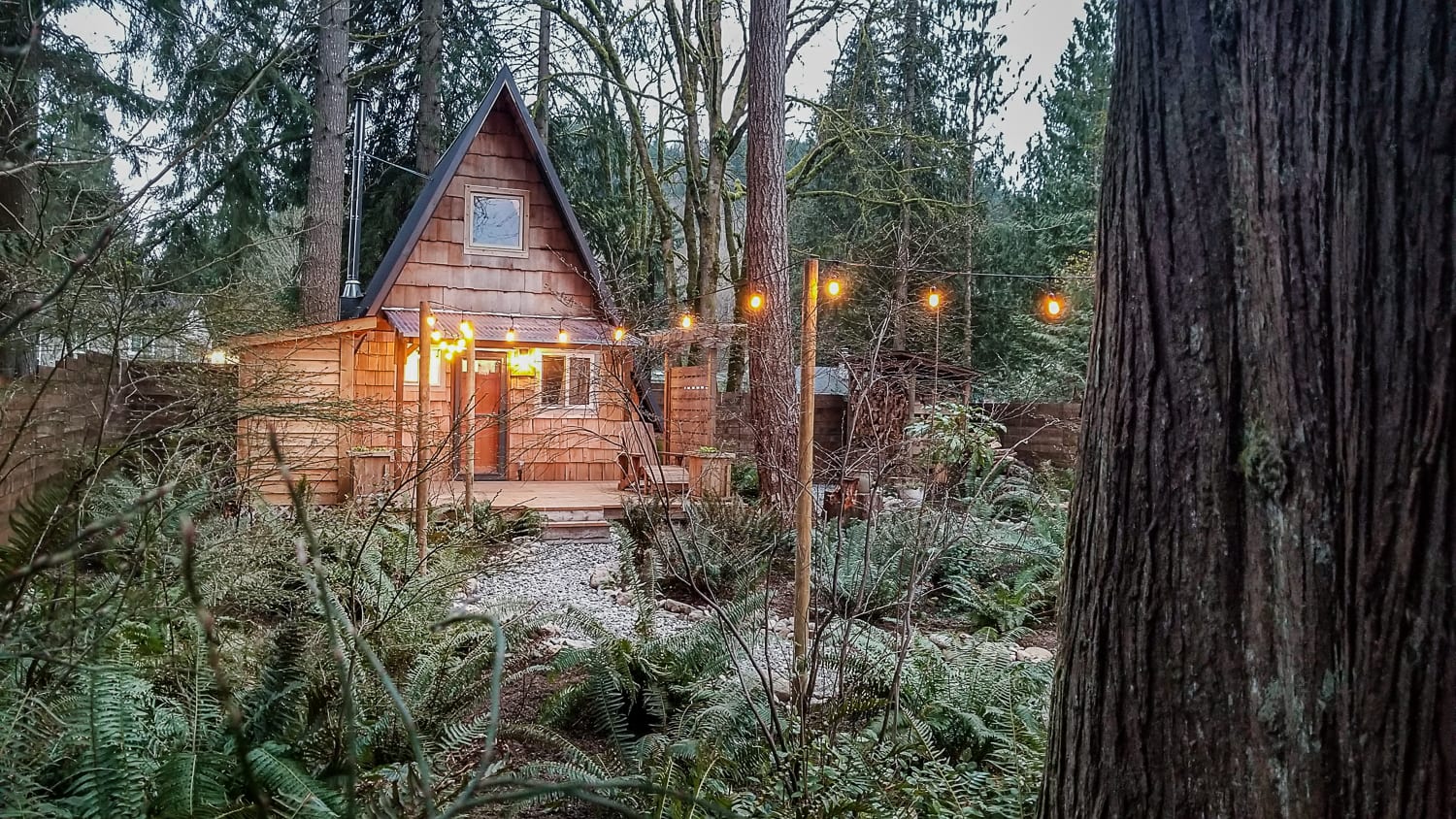 Your Northwest Mountain Wonderland adventure starts and finishes here. The location of this property puts you at the entrance to the Mountain Loop highway and just outside of the mountain town of Granite Falls. You'll find all the good eats of Granite's handful of restaurants minutes away. The town IGA grocery has craft liquor and beverages, as well an amazing deli for your daily adventures. The big hikes of the North Cascades are just down the road. Robe trail and Lime Kiln trails can be great warm-ups with easy terrain and wonderful Robe canyon views. Maybe try a few gravel road walks to lead to hidden paradises. There are also Lake 22, Heather Lake, Monte Cristo Ghost Town, Gothic Basin, Mt Pilchuck, Ashland Lakes, Boardman Lake, and don't forget The Granite Falls Fish Ladder at the falls right by your cabin! Check in with the Rangers just outside of Verlot up the road for conditions. Let's talk about this cabin. This property is the quintessence of our latest transformation. Situated on the edge of a small family neighborhood, you'll find this A-frame tucked nicely into the woods on a ridge overlooking the Canyon Creek spur of the South Fork of the Stillaguamish River. As you enter the home, the open beam look with fresh cedar will remind you of a mountain ski chalet. Big windows and skylights, Butcher block counters, farm sink, bamboo floors, radiant heated slate, large wood stove, spiral stairs, cedar trim, comfy queen bed and furniture. Everything you need to create delicious cuisine, or a craft cocktail. Fully stocked kitchen with cookware, oils, and spices. We almost named this place the "Firepit". Out the backdoor you will leave the world behind and enter a magical place. Totally private, natural landscaping with lush ferns, rock, covered deck with hot tub, pathways through the woods to your firepit that overlooks the cascade foothills, distant river, and wetlands below. The evening may include songs of the thousands of frogs below.