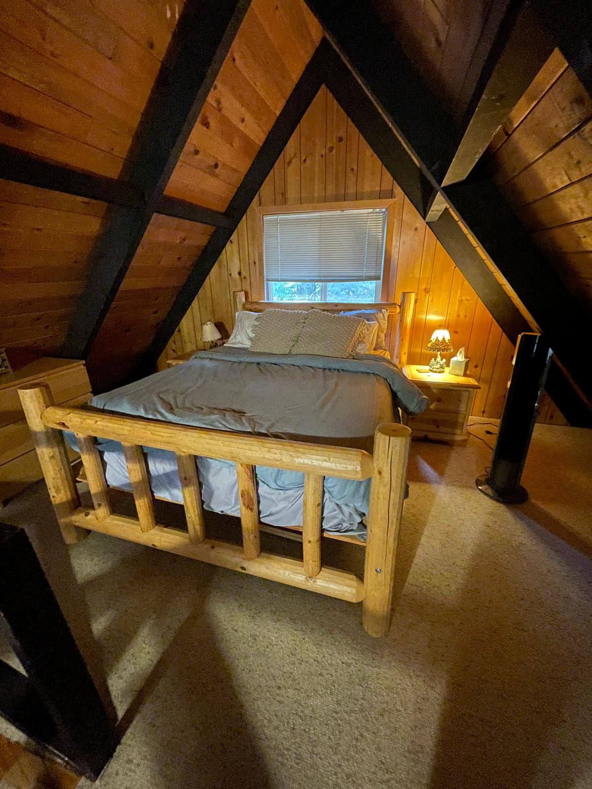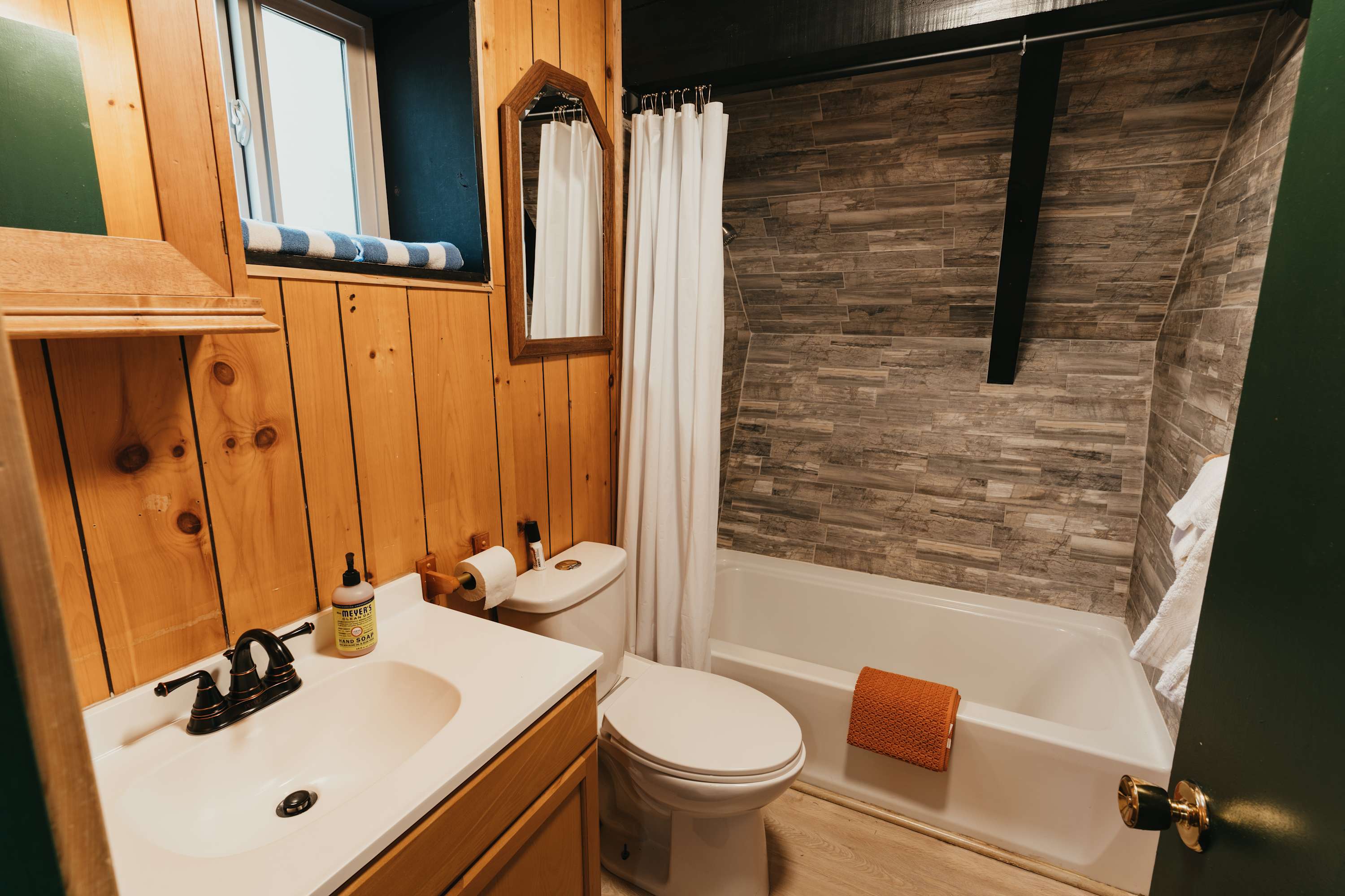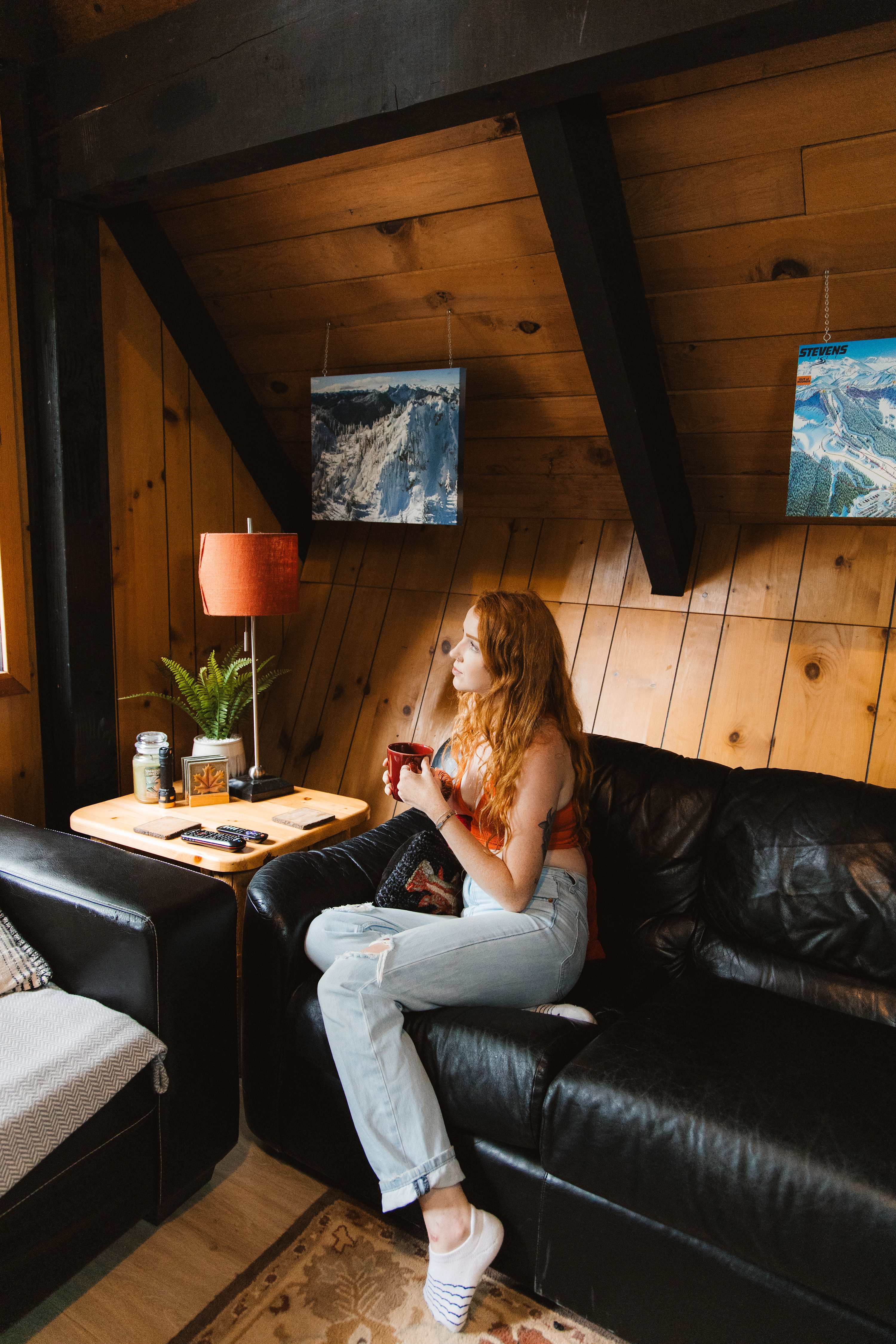 Overall comfortable and rustic. Hot tub on the porch isn't very private - just an open space to the back of the neighbors. The interior has some signs of wear and tear; the sink doesn't drain well, the bathtub/shower drains very slowly, the floor of the kitchen has gaps in it. Otherwise there's a great fireplace, the couches are deep and comfy, and the bed upstairs in the loft is supportive but soft. You can hear road and train noise however if you really listen for it, otherwise the Skykomosh River keeps a nice blanket of white noise over the environs.