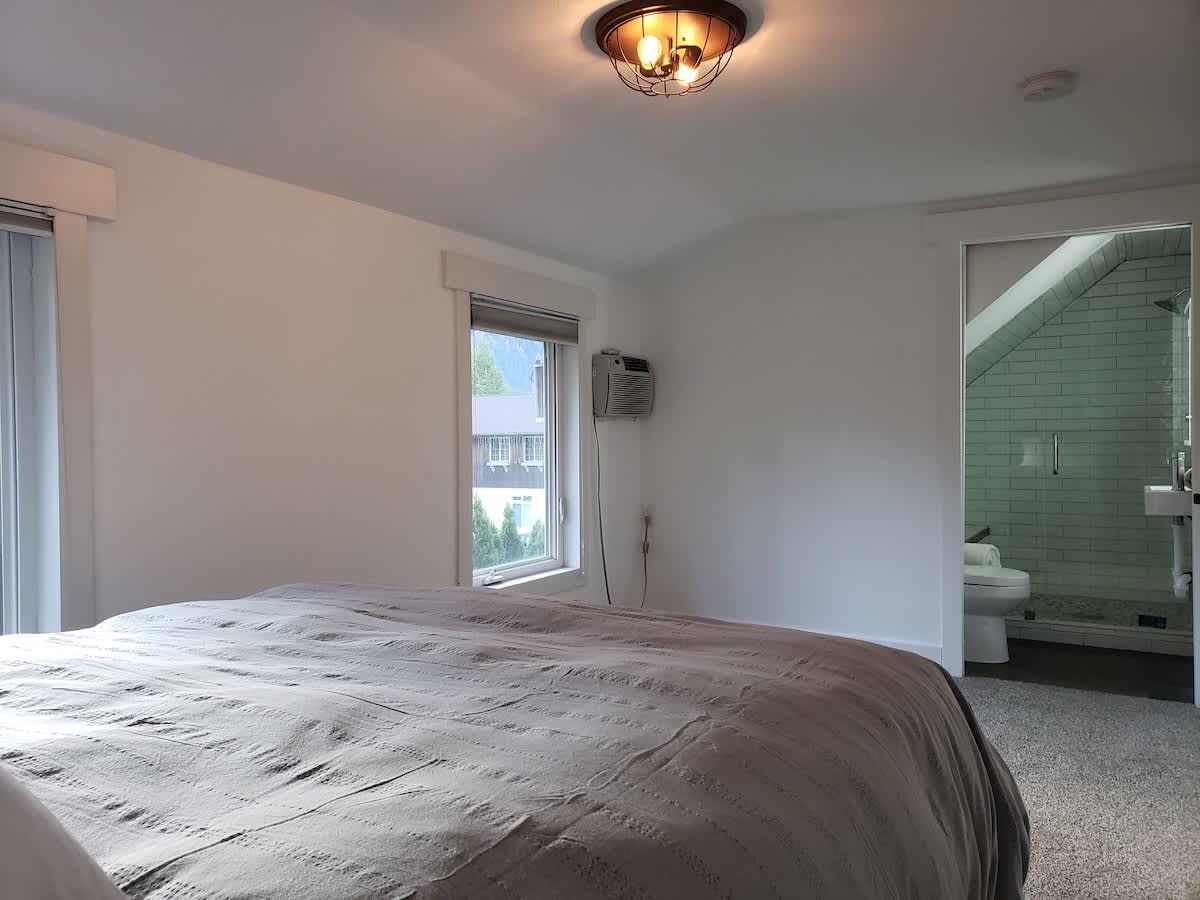 Suite #3 is a unique and a fun room with arguably one of the best views in town! You are in the heart of Leavenworth and can walk to all there is to go and do. From wine tasting, to river floating, and everything in between. In addition, the property has free private parking. Your room is completely private and has its own bathroom. The kitchen and living room are shared spaces that you may use until 10pm.