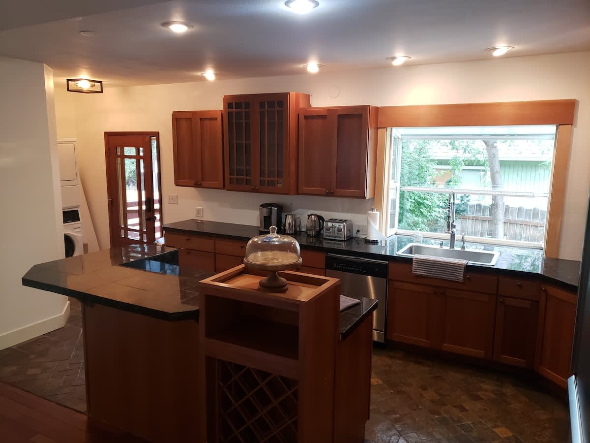 Suite #1 has its own private entrance. You are in the heart of Leavenworth and can walk to all there is to go and do. From wine tasting, to river floating, and everything in between. In addition, the property has free private parking. Each room is completely private and has its own bathroom. The kitchen and living room are shared spaces and you may use the kitchen as often as you'd like before 10pm.