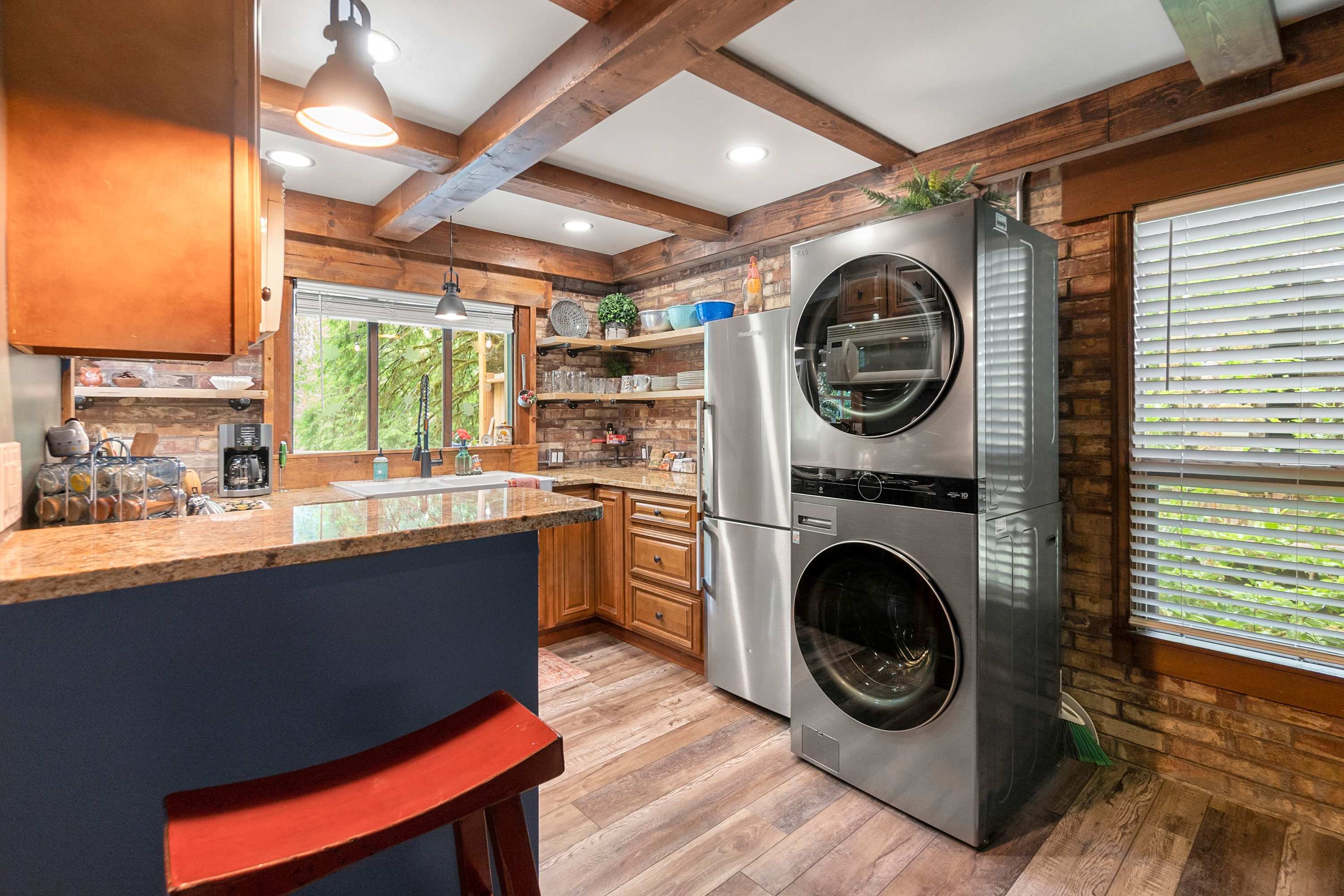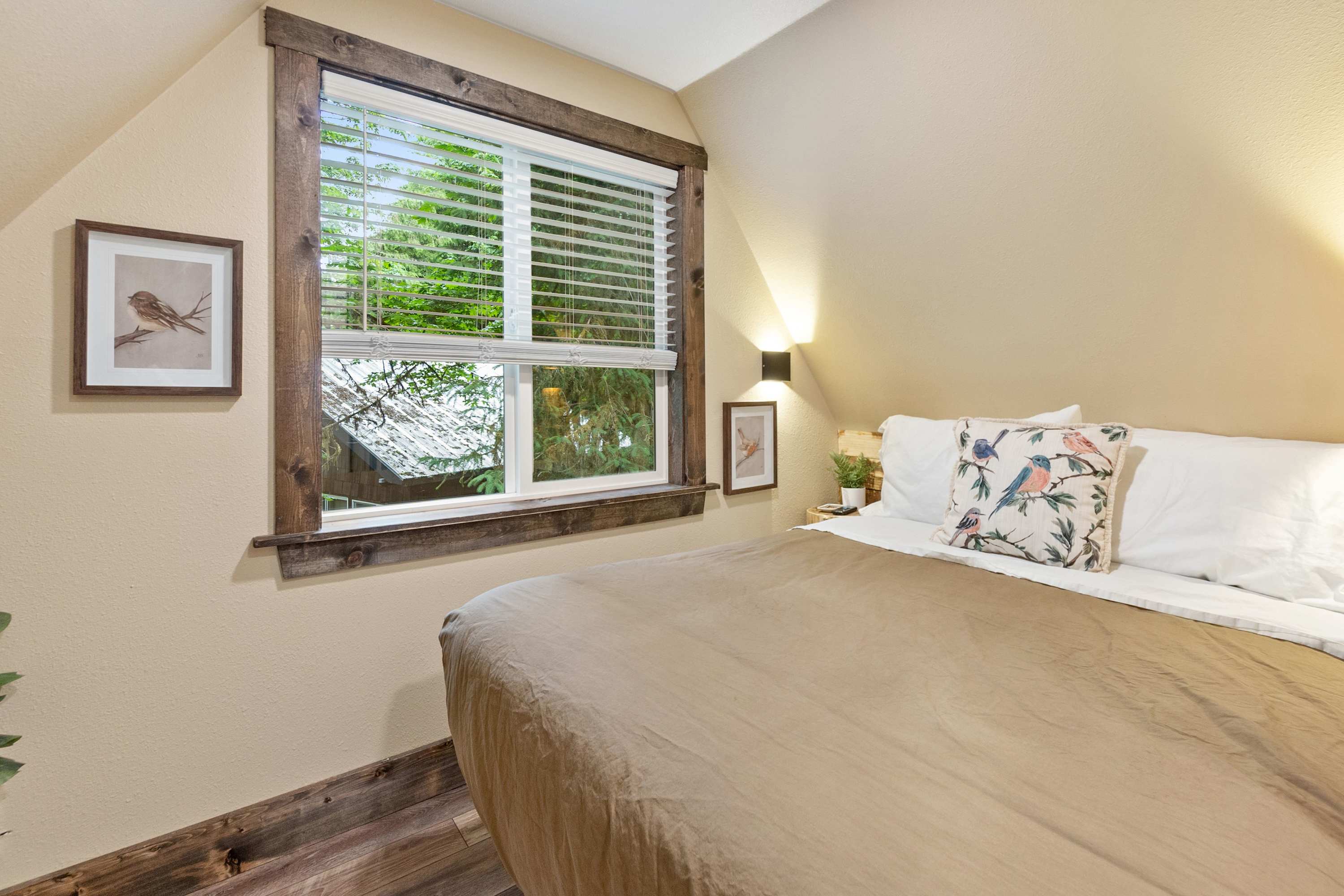 Experience alpine allure at Stilly River Haus: a renovated Tudor cottage that exudes European charm. Nestled in the Stilly River Valley, it sits beneath Mt. Pilchuck, promising picturesque views reminiscent of the Alps. Enjoy mountain and river panoramas from every room, including a hot tub & fire pit. Inside, sink into plush furniture by a grand fireplace and retreat to luxurious bedrooms adorned with premium linens. One and a half baths, fast WiFi, and timeless ambiance ensure a stay of pure enchantment.