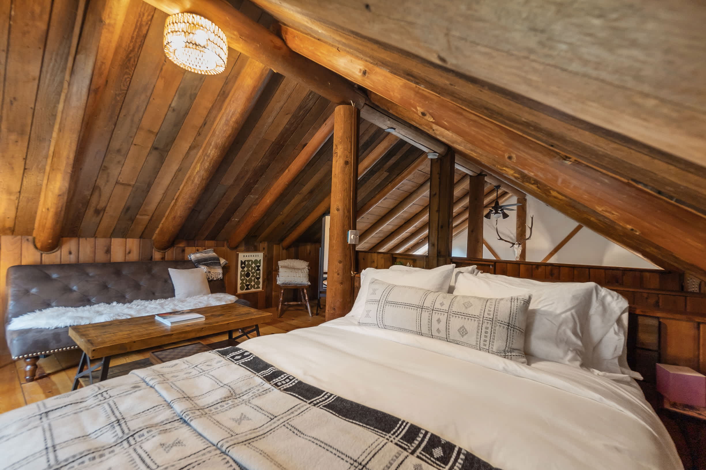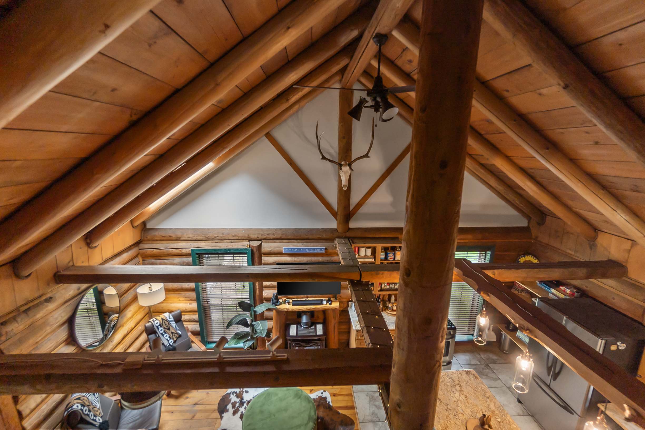 This is a cool log home that has everything you need. The couches are comfy, as are the beds. It's rustic in nature, so expect some dating on various aspects. You will love hanging in the living area with the gas fireplace keeping you toasty. The sleeping loft is accessible via standard stairs, and there is a bedroom on the main level if you are mobility challenged. We have a large kitchen with bar area to gather around while you dig into conversation and cooking endeavors. The yard is fenced along the country road and you could easily pitch a few tents or accommodate a decent size gathering for a special occasion. Great place to throw the stick for the dog, or let the kiddos play in the creek. The hot tub is private and ideal for the evening star gazing. The porch is perfect to sit back and dig deep with your peeps. If you venture out from our property, you'll find an easy walkable neighborhood. We actually have miles of gravel roads within walking distance that will put you up on North Mountain. Speaking of North Mountain, that is one premier mountain biking and hiking park right near you. Overlanding and 4x4's enjoy the roads near you. It's a great place to start and end a day of exploring! If the river is calling you, we have many public river access points within a short walk or drive. The river has always been the favorite for locals :)